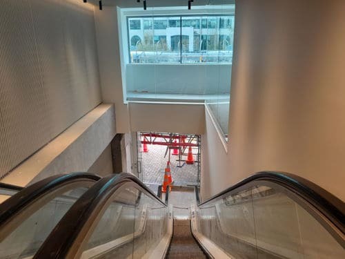 Additional structural openings were created, and new aluminium window and door joinery installed into both the new and pre-existing openings. The escalators were fully overhauled and seismic glass has been installed around them.