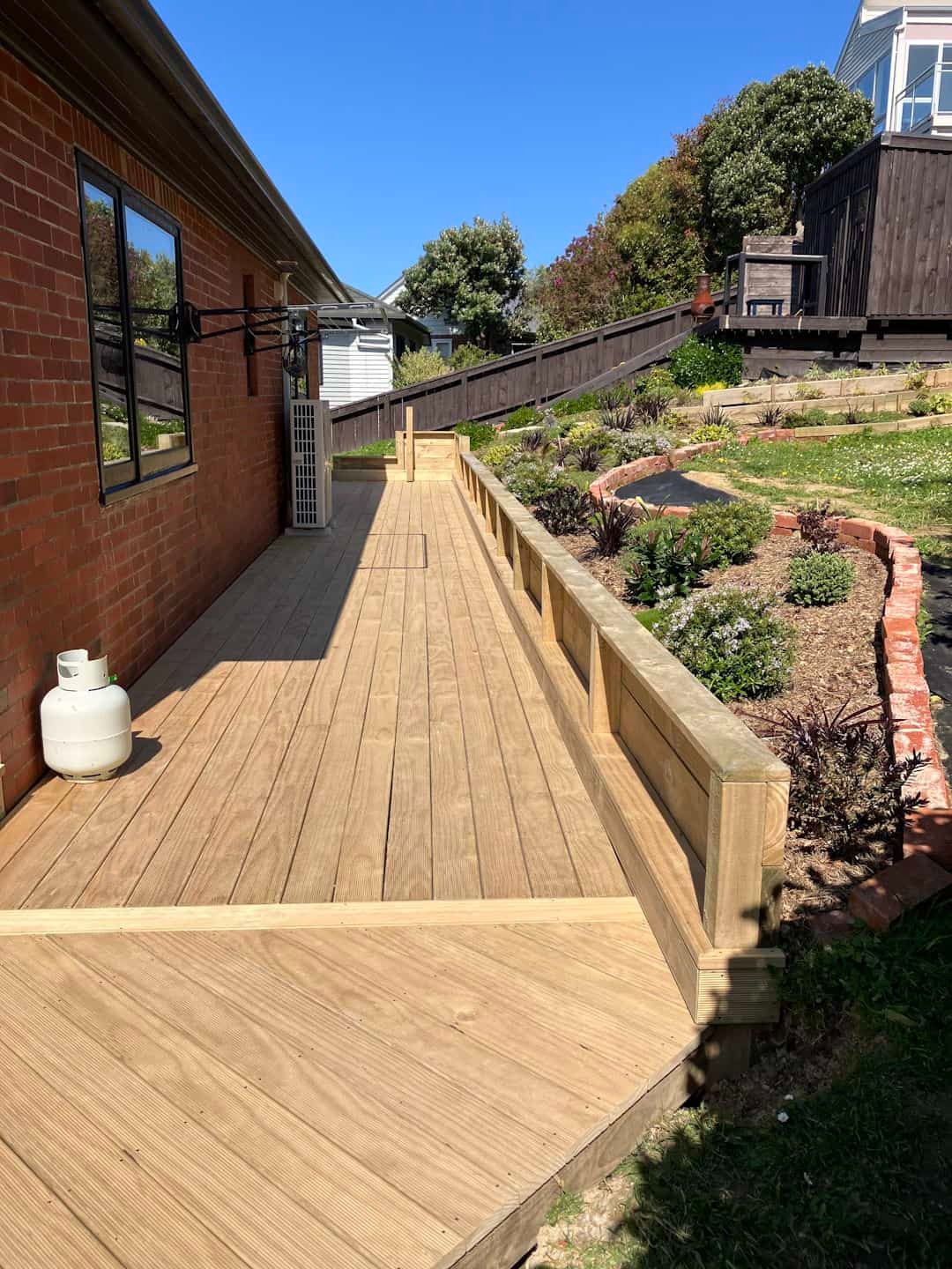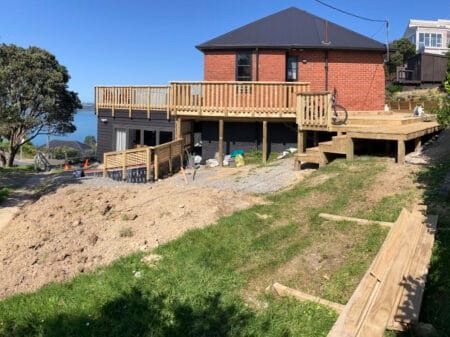 Following completion of the project, we ended up extending the deck all the way around the back of the property with a step down. The result looks incredible and provides substantial views of Wellington Harbour.