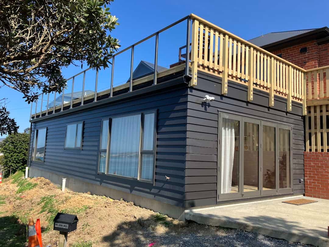 In September 2023, a residential client contracted Built Construction Group to add a one-bedroom sleepout to an existing property with a new roof forming a large deck for the original house – at 37 Benares Street, Khandallah, Wellington.